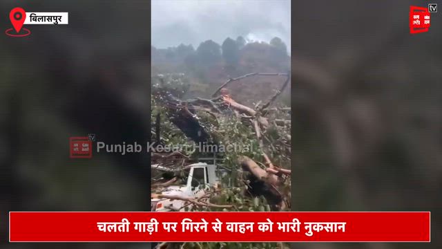 बिलासपुर में तूफान का कहर, क्यारी के पास पीपल का विशाल पेड़ गाड़ी पर गिरा, सड़क बंद